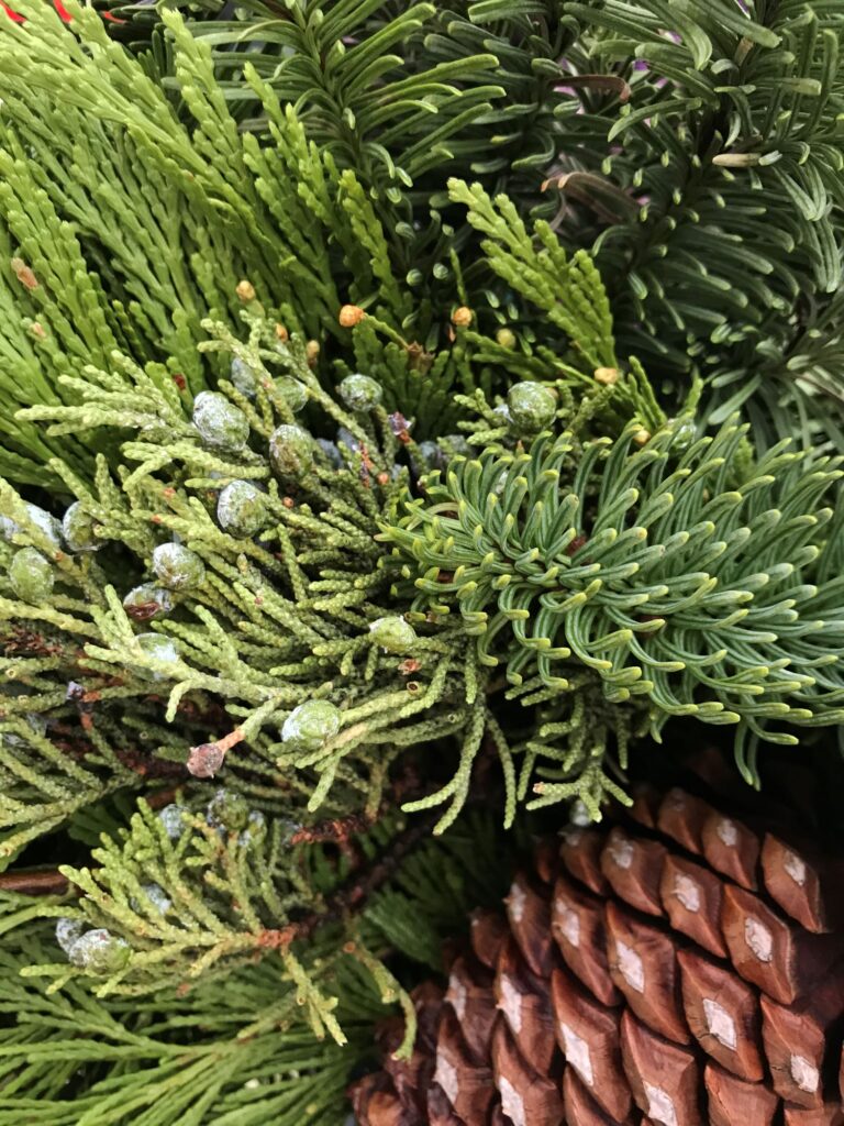- Spruce and fir: Sturdy, fragrant branches perfect for arrangements or doorway swags.